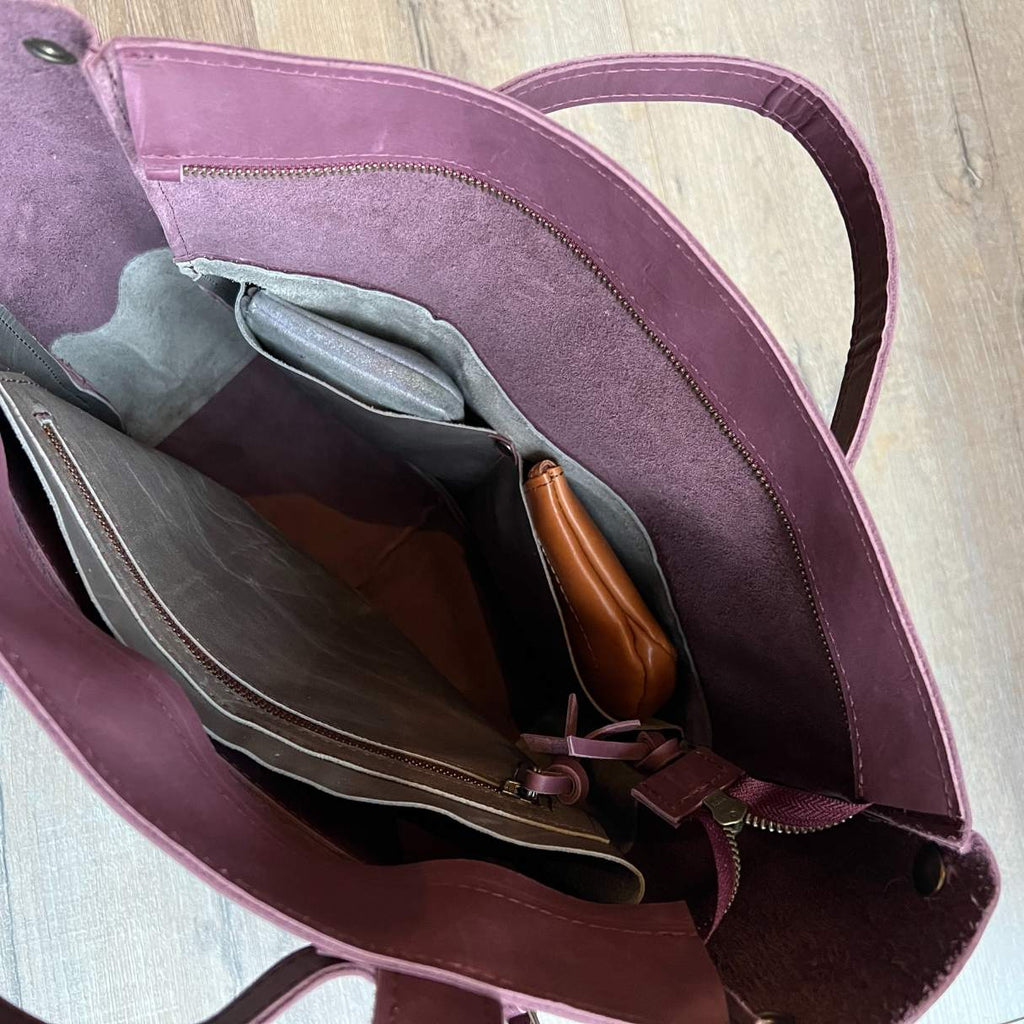 - 2 extra binnenvakken (voorzijde - zoals paarse tas)