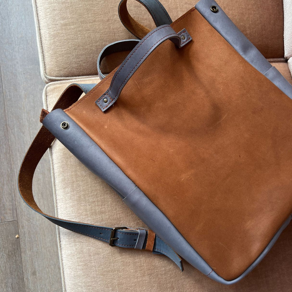 - Van cognac + grijs gered leer™